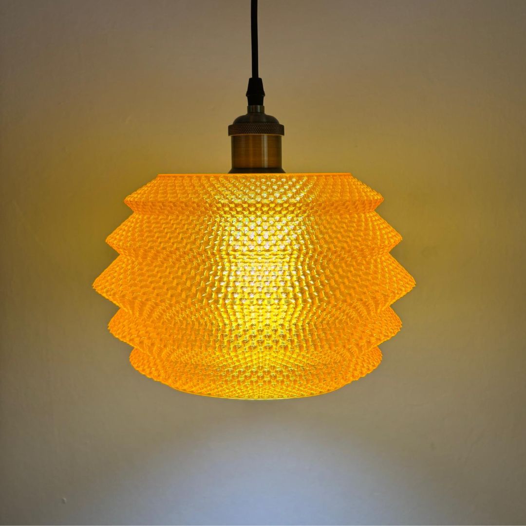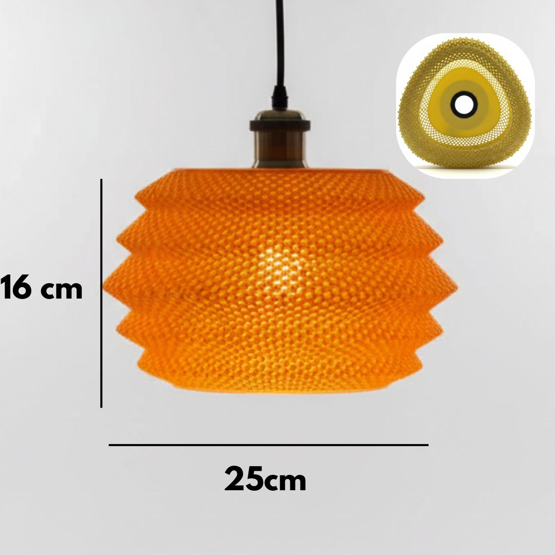Esta luminaria no es solo un punto de luz, es una declaración de estilo. Su diseño único con textura en relieve crea un efecto visual cautivador, difundiendo una luz cálida. Fabricada con Petg de alta resistencia, garantiza belleza y durabilidad en interiores y exteriores. ¡Arte moderno para colgar!